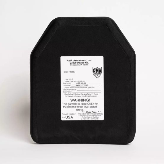 Due to the popularity of RMA’s Level IV model 1155 single curve hard armor plate, we are now proud to offer a 10×12 MULTI-CURVE version of the 1155 plate! RMA’s Level IV multi-curve (Model #1155mc) hard armor plate is a cost effective, multi-hit rate armor plate that offers excellent Level IV protection against 30.06 M2AP, m855a1, 7.62x54r and so much more. This brand new armor plate is professionally wrapped, water resistant, and manufactured 100% at RMA’s factory in Centerville, Iowa.